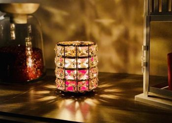 Este portavelas de metal dorado y cristal difundirá una luz suave creando un ambiente agradable y acogedor en tu hogar.